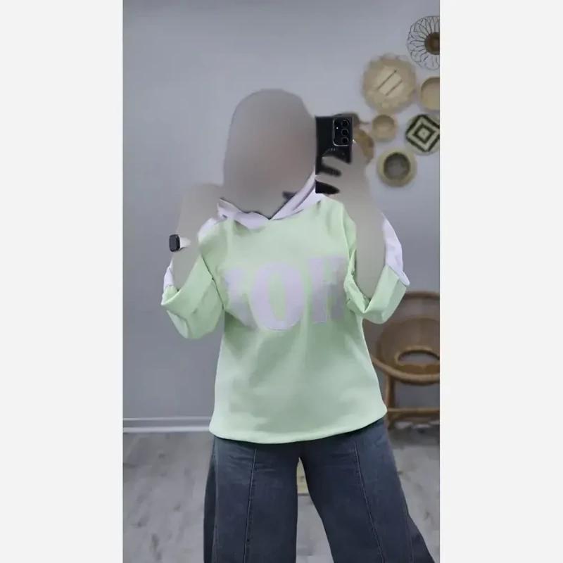 هودی زنانه دورس طرح دار سبز پاستیلی فری سایز مناسب 38 تا 46