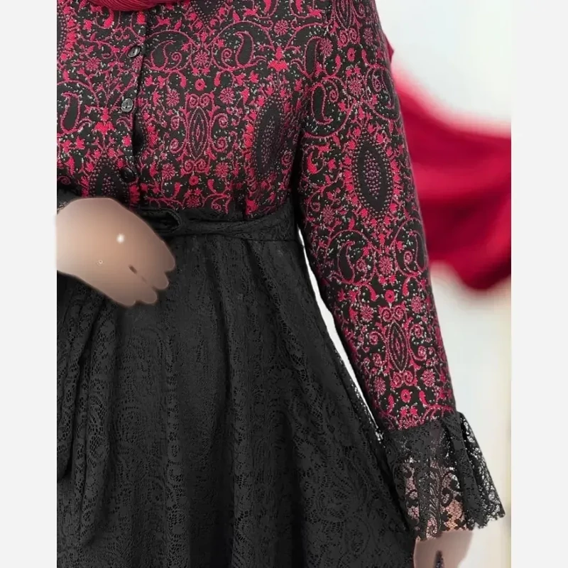 پیراهن گیپور بلند زنانه طرح فروغ فری سایز مشکی قرمز