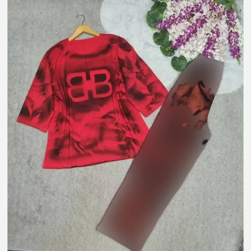 ست تی شرت و شلوار نخ پنبه زنانه طرح دار قواره دار سایز فری