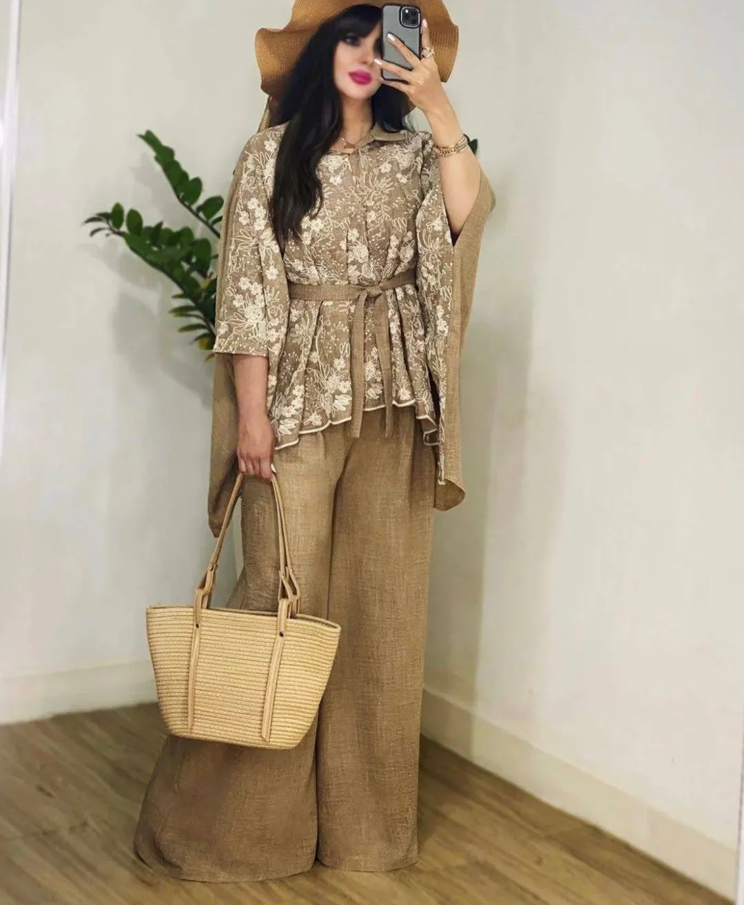 ناموجودست دو تیکه مانتو و شلوار مراکشی ژاکارد سایز فری ۴۰تا۴۶